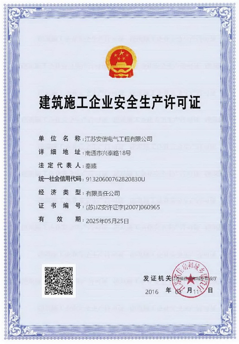 在創業之初,公司就堅持高起點的戰略思路,廣納賢才,集聚行業精英,創新發展,做優企業品牌。現已取得:承裝二級、承修二級、承試二級,電力工程施工總承包二級,輸變電工程專業承包二級,建筑工程施工總承包二級,建筑機電安裝專業承包二級,地基基礎專業承包二級資質證書,并通過了質量、環境、職業健康和安全管理體系認證,確保各項工作有序管控。